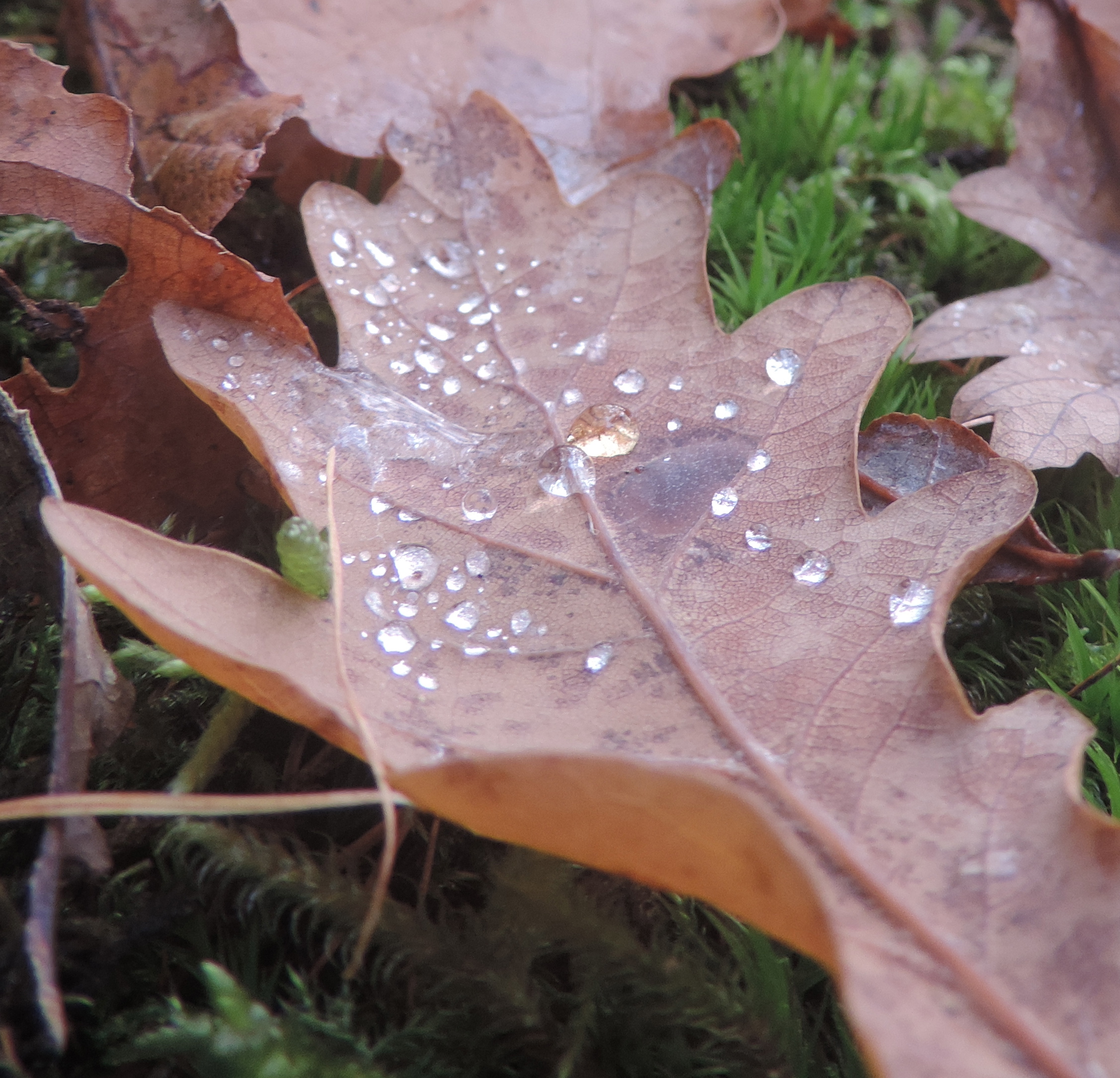 Look at this photo. What caught my attention was a sparkle. The light and the water glistened like little gems. I took a few photos. When I looked at this one later I noticed that one of the drops of water is different. It’s like a little drop of honey, or amber, rather than like a small diamond or crystal of clear glass.