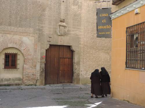 The first photo is of these two nuns walking around the corner of a building. Segovia has a history of convents, and many of them are still active.