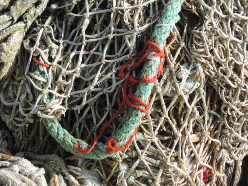 When I stroll along a quayside in any fishing village, I frequently come across heaps of nets, and bits of nets. There’s something engagingly beautiful about them.