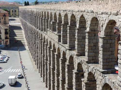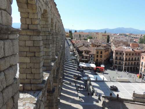 When I stood above the aqueduct in Segovia I got one of those experiences. It’s an immense structure built in the late first century AD using stones which were carved to fit precisely on top of each other. There is no mortar or cement holding this together. It’s like a giant “dry stane dyke” (as we say in Scotland).