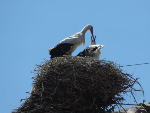 I think we all need all of these behaviours in the adults around us or we won’t grow into healthy adults ourselves. And when I look at these storks in Segovia I see the incredible, huge structures of the nests, built to provide a home and shelter, built up high to protect from predators. And I see this adult feeding the chick directly – providing nourishment and nurture both at the same time (food and loving attention)