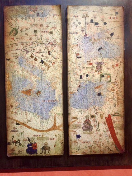 There are obvious Islamic art motifs and designs in this panel (although, as a Scot, I’m always reminded of Celtic designs when I see these looping, intertwining designs in Islamic art). I’ve seen that kind of art a lot. But in this particular panel there are three creatures in the central strip. That’s very, very unusual for Islamic art, and the guide book tells me they are “medieval” or “gothic”. They are a really odd group of creatures, each one a “chimera”, an imaginary creature which has body of parts of completely different creatures. In the middle is a mermaid, on the right a centaur, and on the left, well, I don’t know what you call this sort of chimera, but it’s a human-lion hybrid. Chimera are particularly strange examples of “And not OR”!
