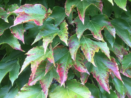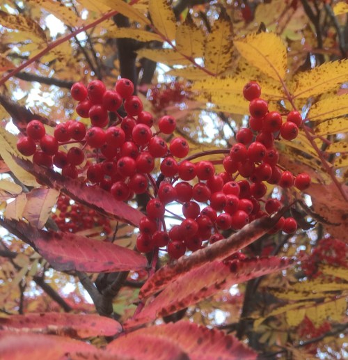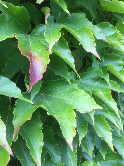 How many different sizes of droplets are there? How many droplets are there? I guess that, theoretically, you could measure them, count them, add them up and tabulate them, but, well, hey, life’s too short. I just stand there, transfixed, in awe of them. Each one a tiny lens, showing me the world around it upside down.