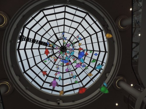 I thought of this when I looked at this photo of this circular ceiling window, with the paper birds flying round in it. I thought, yes, this is what it is like….cycles and spirals which change with every turn around the circle.