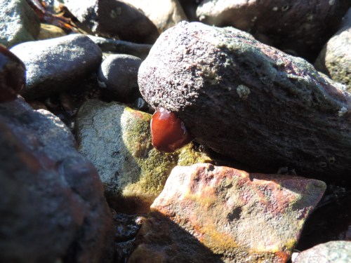 This looks like a bird, don’t you think? That’s interesting because in fact it is a stone on a beach with a little sea creature clinging to its undersurface, looking for all the world like a bright orange beak, and a tiny shell attached to the side just where you might expect to find an eye if this was a bird.