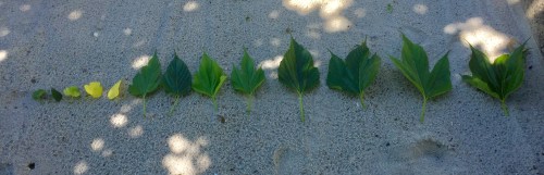 Look at this photo. I gathered up a bunch of the leaves which had fallen and laid them out in size order. Isn’t that incredible?
