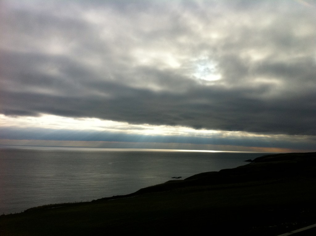 I love to photograph light….sunbeams, dawn, sunsets, moonlight, you name it. But I am especially drawn to scenes where there is a lot of contrast. I just love an image like this with the dark land before me, the grey clouds above, the grey sea below, and then, there on the horizon, at the far edge of the scene, is a display of sunbeams stretching down to the make the sea shine, and turn the grey clouds, blue.