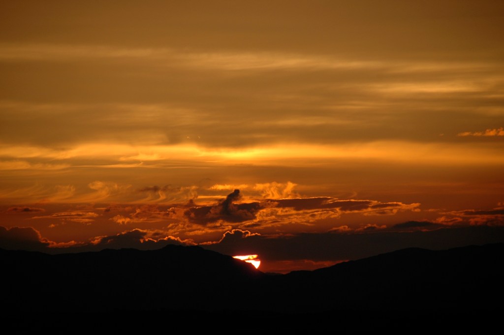 So I thought I’d share with you one of the many, many sunset photos I have. Like all the rest it stirs a mixture of joy, delight, wonder and awe in me. Sunsets are one of the most common ways to experience “l’émerveillement du quotidien” (the marvel of the everyday) which keeps that sense of specialness so alive in the here and now.