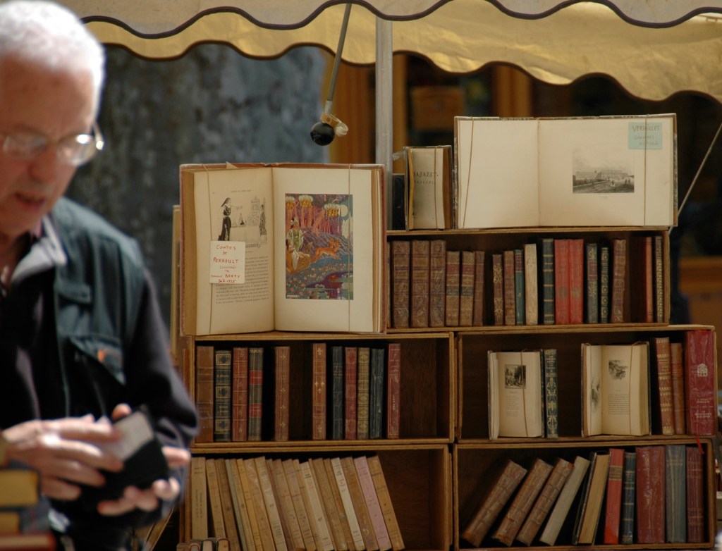 I love bookshops, old and new, and I adore browsing around the booksellers at fairs and markets. It was a market like the one in this photo which caught my imagination whilst on holiday in France many years ago, and probably seeded my idea to retire when I did, and come to live in France. I had decided I wanted to live part of my life not just in another physical part of the world with a different geography, climate and history, but I wanted to live in a different culture. In particular I wanted to immerse myself in the language and literature of France…..it seemed to offer both different ways of seeing and understanding the world, and to open up whole areas of thought and observation which was unknown to me.