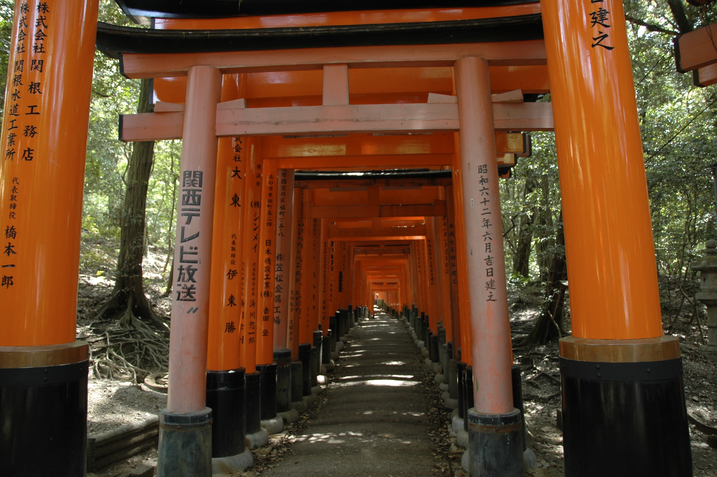 As you walk up the path you pass under one gate after another, and it never becomes “same-y”. It seems that you can experience the uniqueness of each gate, one at a time, and, of course, if you stop, look ahead, turn round and look back, then you see these long snaking tunnels…..because although the gates are clearly separate from each other, as you look at a number of them extending into the distance, the spaces disappear and they seem to form a continuous arch.