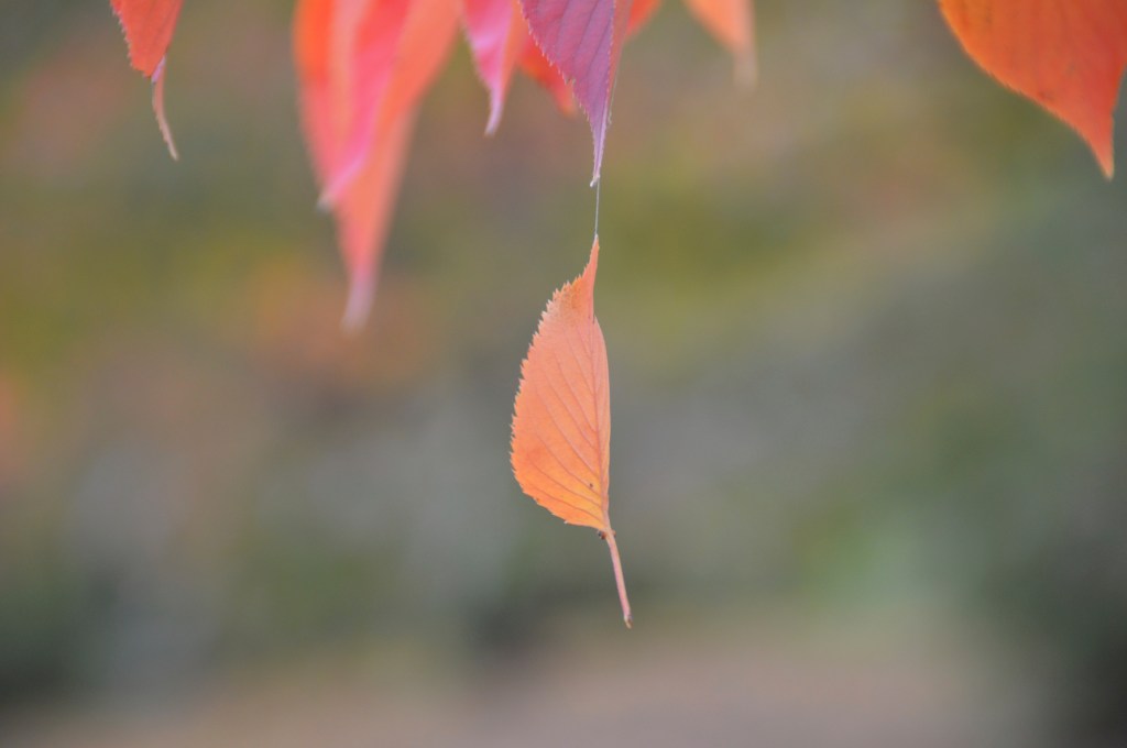I saw this leaf spinning around in space and was astonished. How can a leaf hover like that? When I looked more closely I saw the missing piece….a fine, almost invisible thread connecting the leaf to another one which was still attached to the tree.