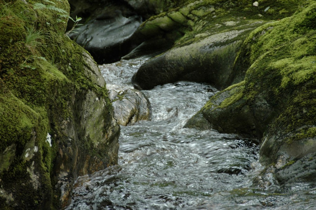This is such a common sight for me. There must be thousands of such streams, or “burns” tumbling down through the hills in Scotland. This combination of lively, gurgling water, centuries-smoothed rocks and green moss and grasses twisting this way and that is just so beautiful, so pleasing. The sound the water makes as it hurries downhill is like a magnet. When you’re out walking in the hills or in a forest this special noise draws you towards it. It’s a sort of compulsion. Once you hear it, you feel magnetically drawn towards it, to go and see it, to stand or kneel beside it, to slide your hand into the cool, clear waters.