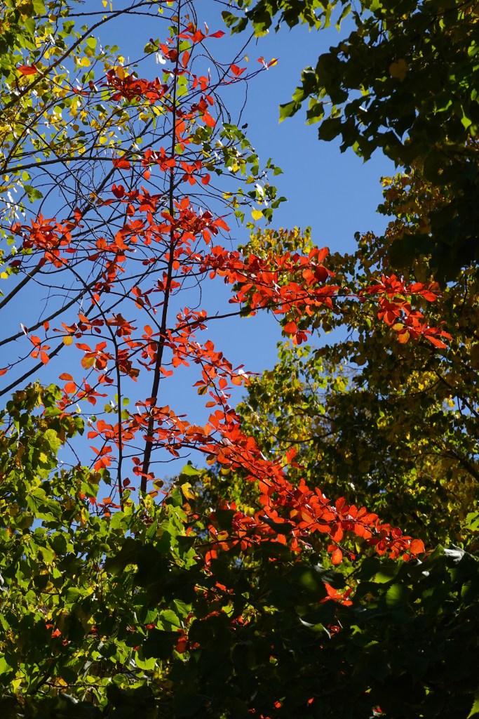 When the leaves start to change colour going from green to vivid red as they’re doing in this photo, they’re beautiful and they grab my attention. I mean how could I miss a spectacle like this?