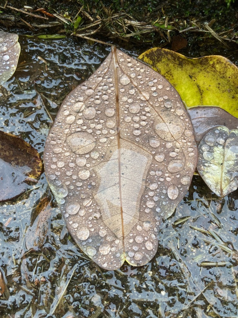 It’s been raining quite a lot these last three days but when it stopped for a bit I took a wee walk in the garden. The first thing that caught my eye was the glitter of sparkling water droplets on fallen leaves.