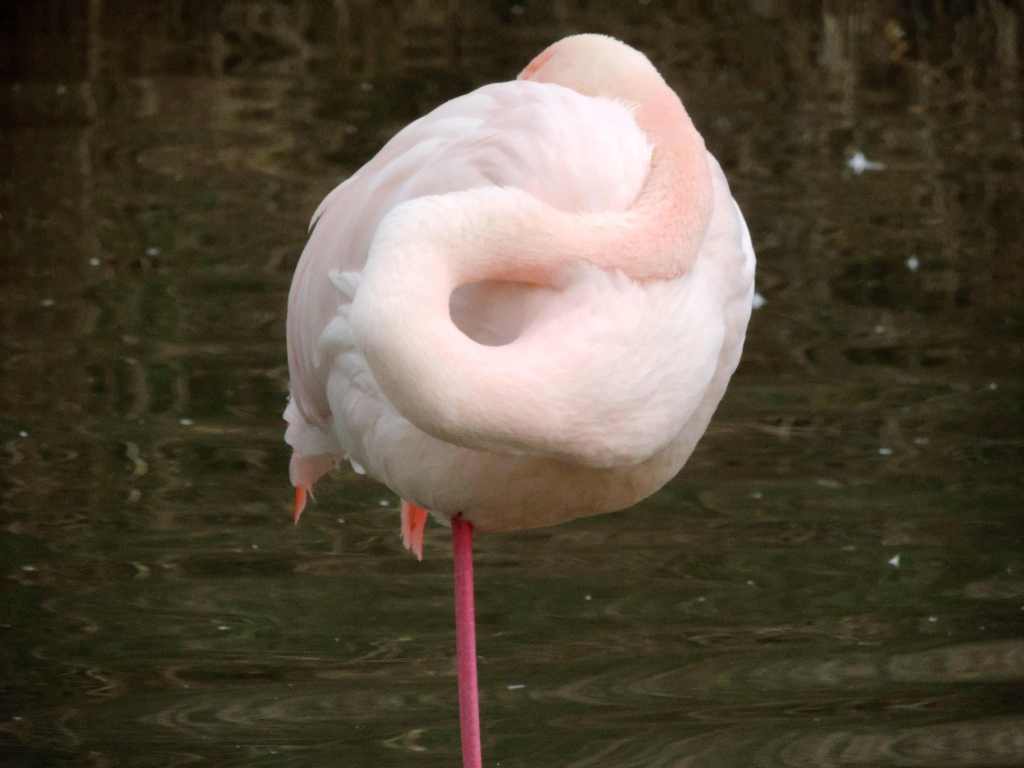 Probably not the same as this flamingo! These are the extraordinary creatures. The way they move flicking their heads back and forth, walking as if on stilts. When they fly they look prehistoric. And when they are sleeping….look how they stand on one leg and curl that long neck around their body. Astonishing.