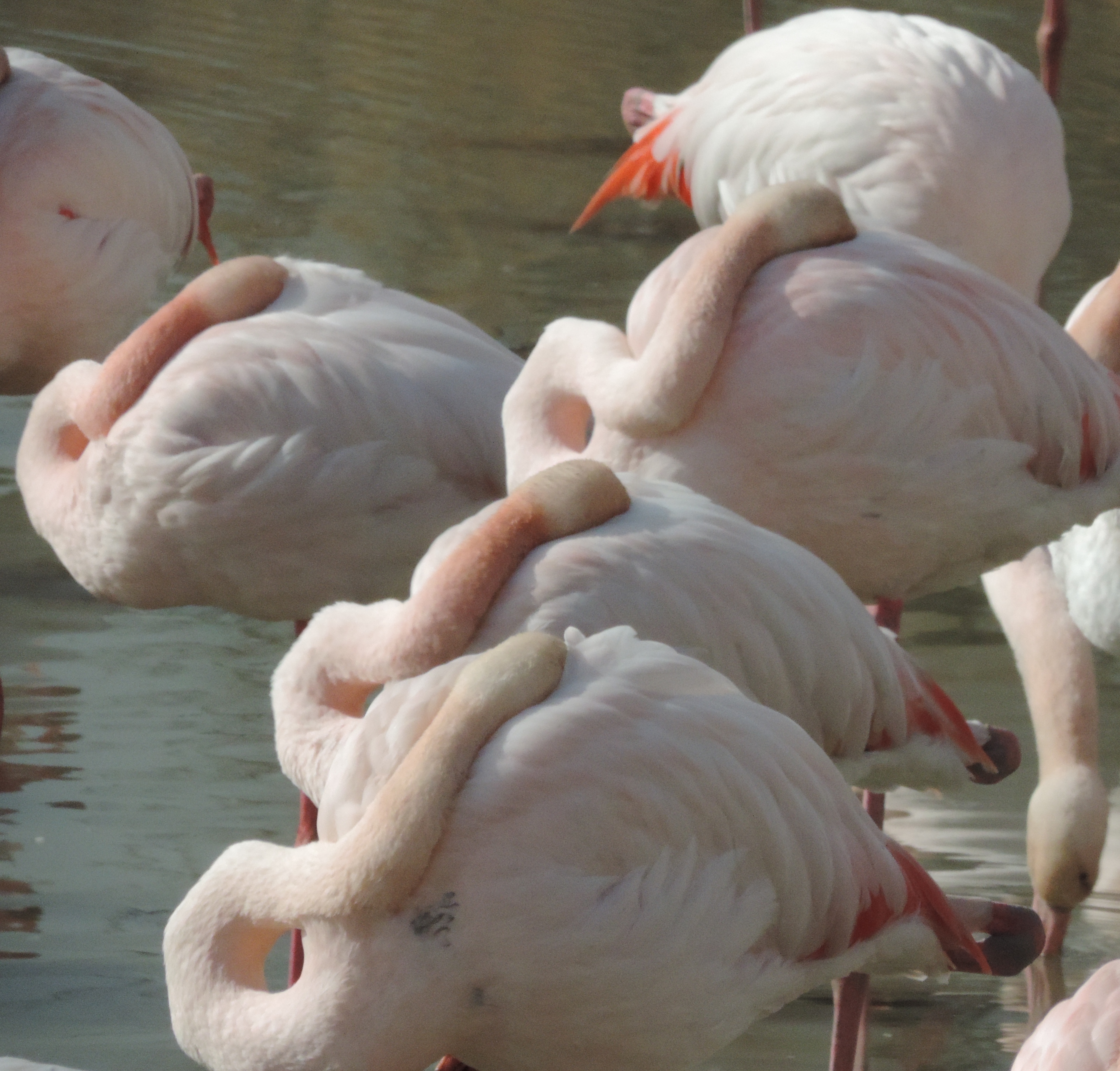 These ones in the Camargue have beautiful shades of pink feathers, some, suddenly richly red, but mostly more subtle pinks.