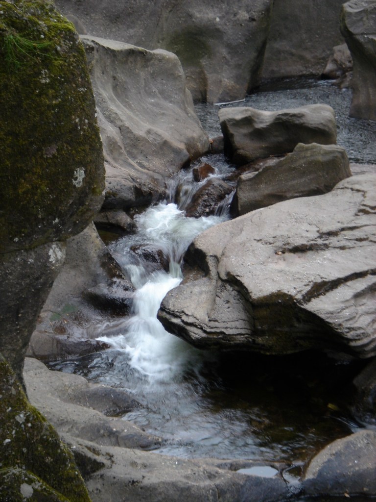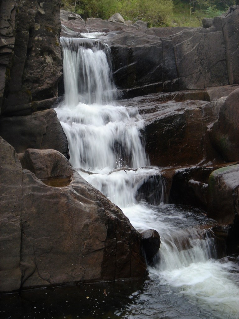 I especially love when you can see enormous, apparently unchangeable rocks, smoothed and carved into all kinds of shapes by flowing water…..like in my photo here of Bracklinn Falls.
