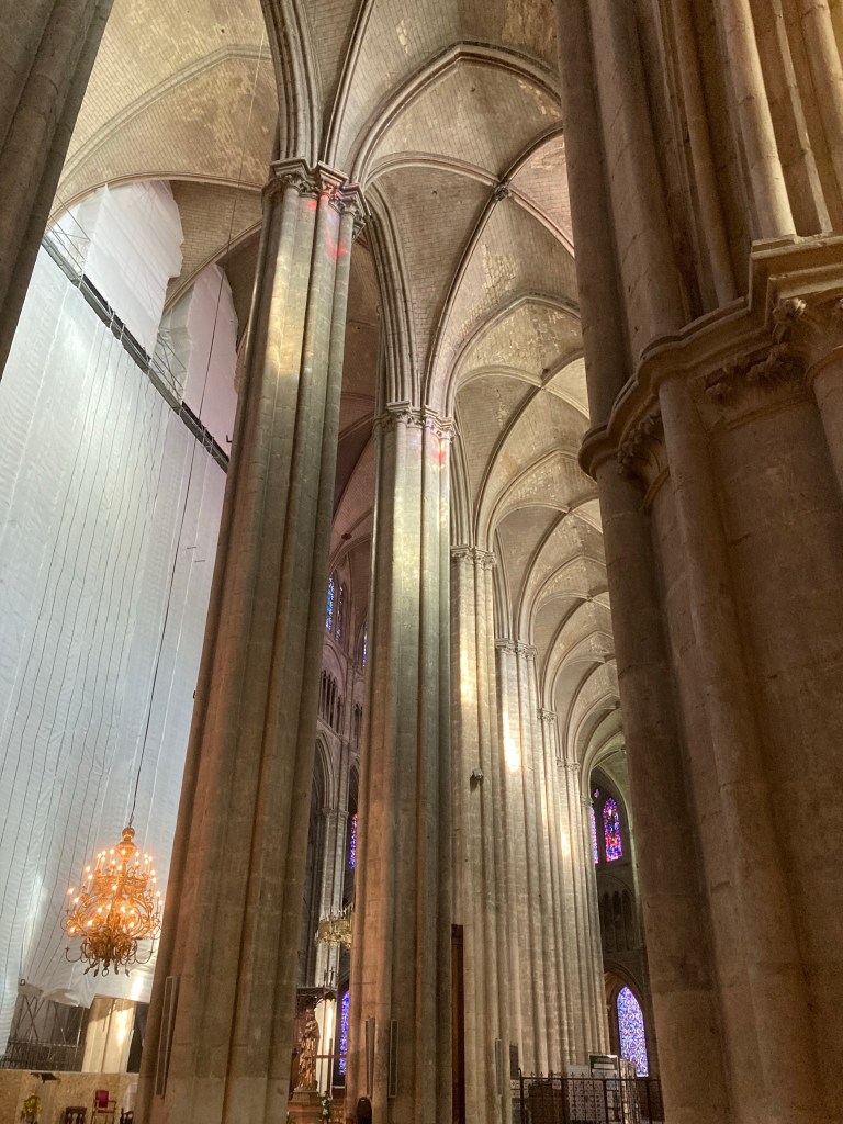 There are churches and cathedrals throughout the whole of France. I don’t go into them all because I can feel overdosed with them. Also, I’m not Catholic, so have no identification with the symbols and artworks inside. However I can’t help but be impressed with the architecture. These high vaulted ceilings are awe inspiring, which is, I’m sure the intended effect.