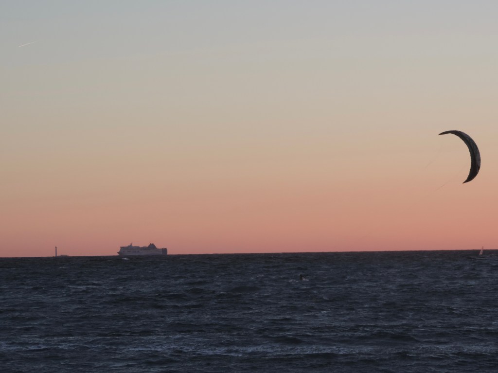 It’s a still photo, but nothing in it is still. The kite, the surfer, the ferry, the sea, the sun….everything is movement.
