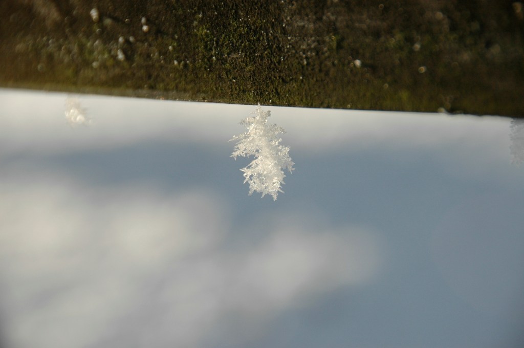 This is one of my favourite photos. It isn’t a snowflake but a single water droplet which has frozen into this leaf-like pattern.