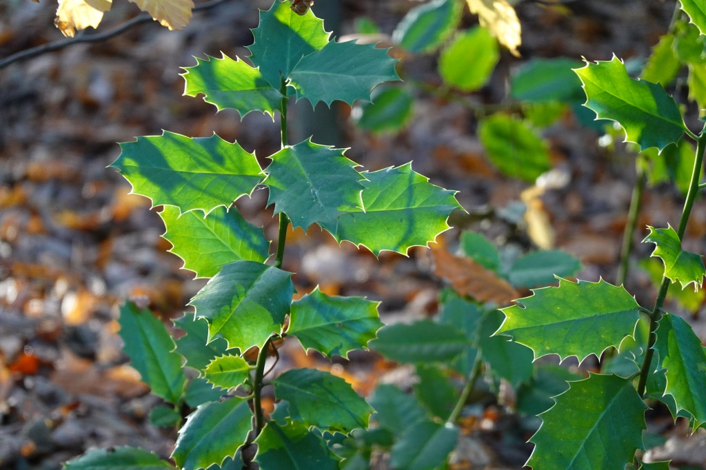 I’m not a botanist but I’m pretty sure that holly leaves have these jaggy edges for protection. I don’t think they are simply a decorative design feature. They are to dissuade animals from eating them. We living organisms have an incredible diversity of defence systems…..from spikes to poisons to….well, the list is huge. We humans also use a huge number of different defence strategies, both behaviourally and with our complex systems of immunity.