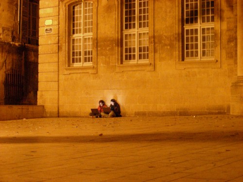 I took that photo above many years ago, one evening as I walked through Aix-en-Provence. I guess these two folk found a way to access free wifi! But that image comes back to me now as I think about how we are breaking out of the old ways and habits of office working.