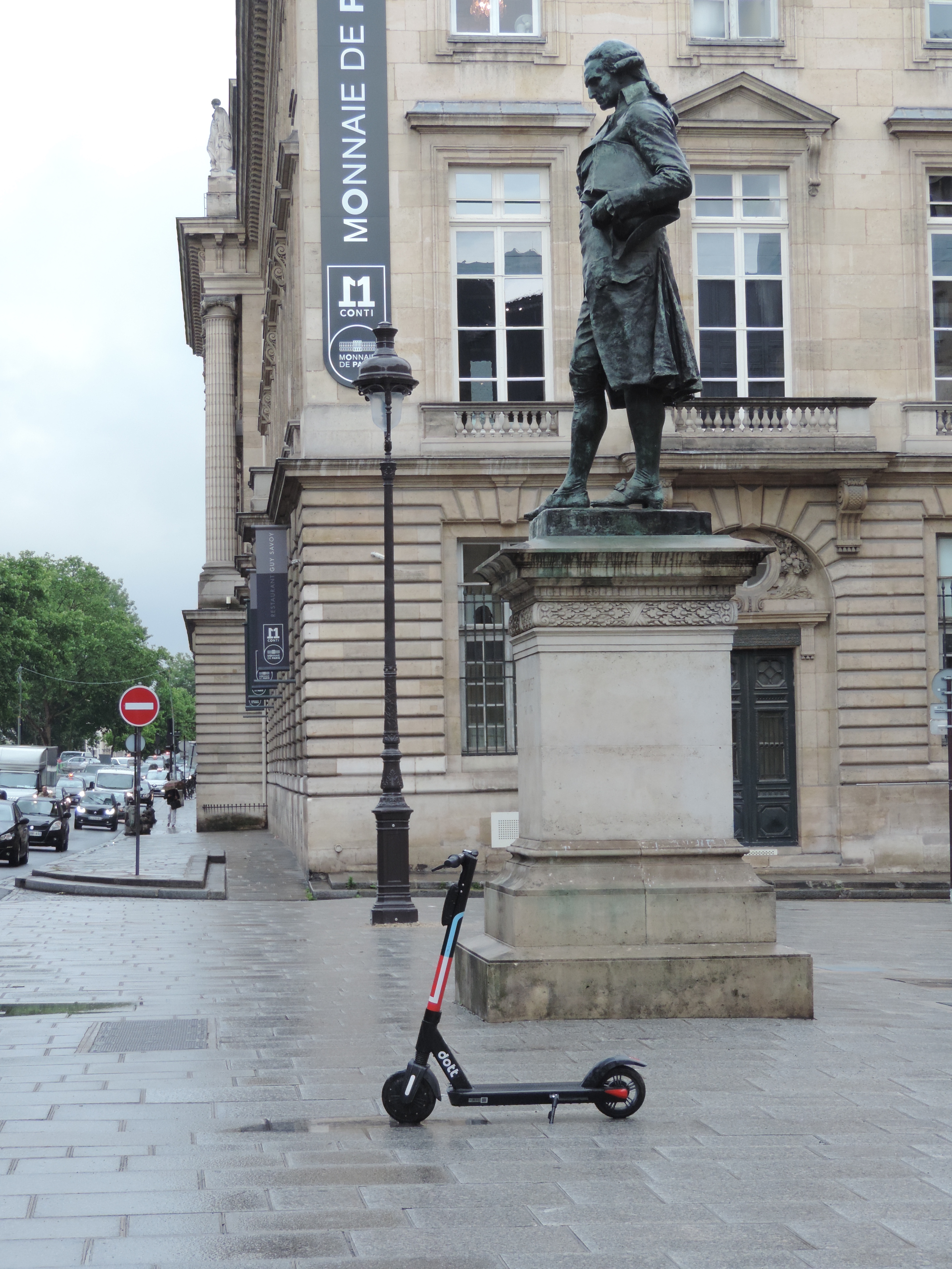 One day in Paris I came across this electric scooter sitting just beside this rather imposing statue of Condorcet. I had the notion that the serious thinker was looking down rather disdainfully at the scooter.