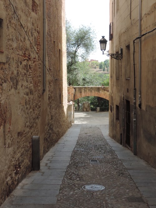 I took a photo of this little street in Segovia for one reason – it’s name. I mean, look at the street. I’m standing at one end taking the photo so you can tell it’s a pretty small street. I don’t think the buildings on either side of it would entice you to go and explore it, but the cobblestones are attractive, and, probably more than anything that arch at the end looks very inviting. Which is interesting because seeing the arch, which invites you to pass through it, and seeing the countryside rising up the hillside beyond it is definitely tempting. But the truth is there are wonderful views of the countryside all around Segovia.