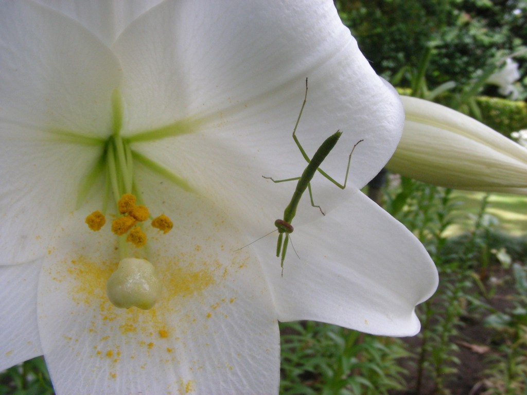 The first thing that struck me in this photo was the symmetry, or echo, between the shape of the head of the insect and the ends of the pistil and the stamen. That resonance of form seems to emphasise the type of relationship which flowers have with such insects.