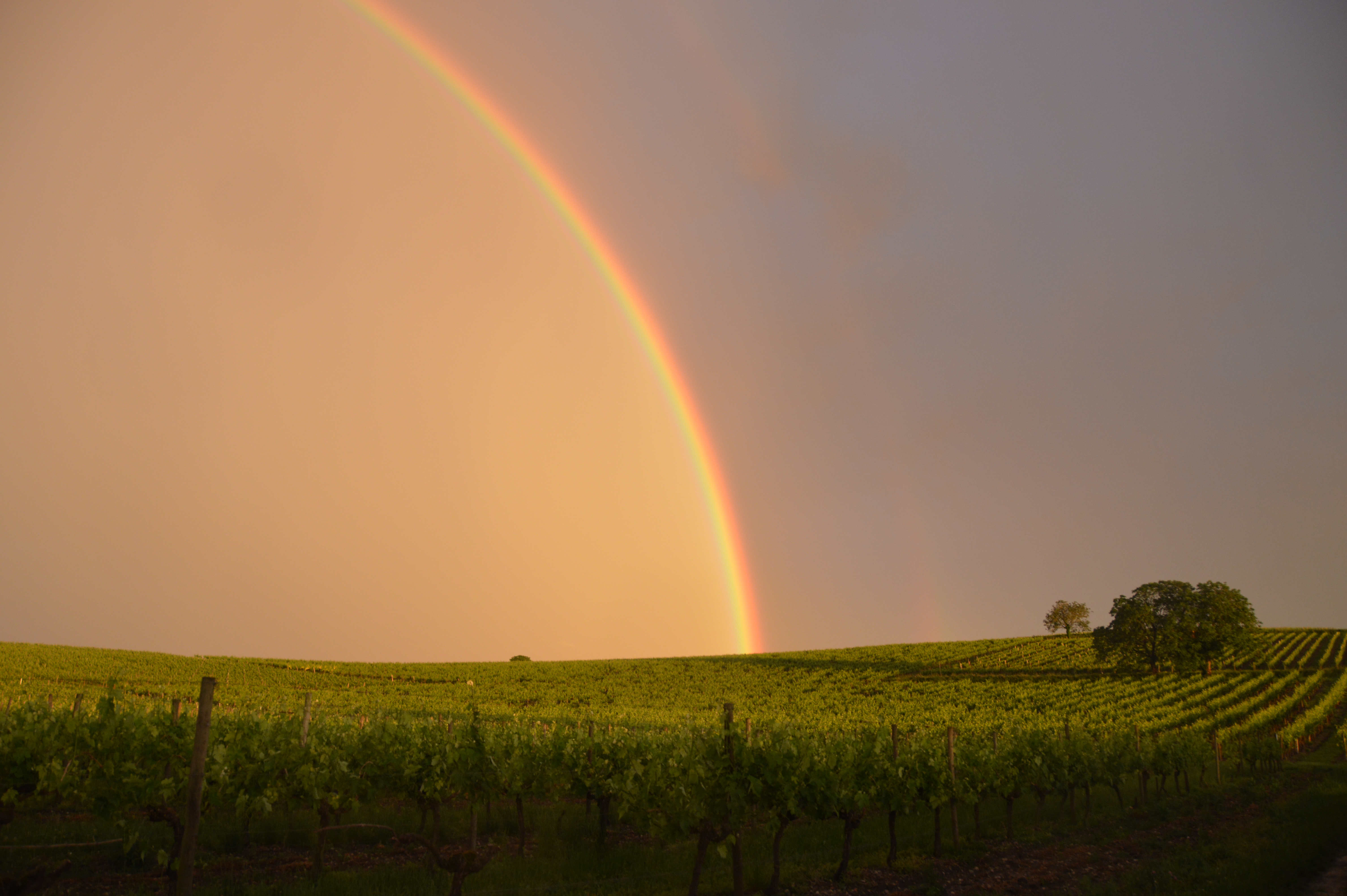 This is probably the most unusual and spectacular rainbow I’ve ever experienced. I took this photo (and a whole batch of others) when this rainbow appeared at the top of the hill over the vineyards a few years back.